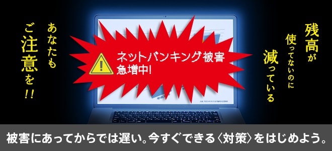 ネットバンキングのパスワードなどを盗み取り、口座から勝手に預金を引き出すという悪質な犯罪が急増しています。