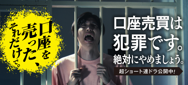 口座を「売る」「貸す」「無償で渡す」すべて犯罪です。
