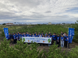 2018年に宮城県および仙台市と「みやぎ海岸林再生みんなの森林づくり活動協定書」を締結し、仙台市荒浜地区においてクロマツを植樹・育成。2024年10月、育成環境を良好に保つため、植樹区画である「七十七未来の森」にて行員ボランティアによる森林保全活動を実施。