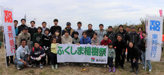 2009年度より福島県内において、役職員やその家族による植林活動(「とうほう・みんなの森づくり」)を展開。緑豊かな「ふるさと」を次世代につなぐため、「森の再生」と「海岸防災林再生等の環境整備」を主な目的として、延べ4,900本(累計植樹本数、2025年3月末)を超える苗を植樹。