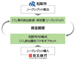 Jークレジットの購入を通じて、松阪市における森林整備の促進に貢献するとともに、当行グループの松阪市内拠点におけるCO2排出量のカーボンオフセットに活用しています。