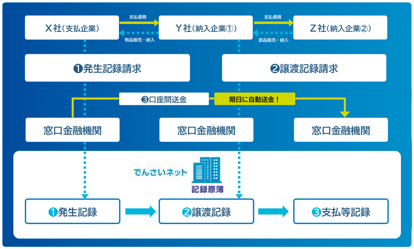 全銀協は、電子記録債権「でんさい」を全国的規模で記録・流通させる社会インフラとして、「株式会社全銀電子債権ネットワーク(でんさいネット)」を100%子会社として設立し、2013年2月からサービスを開始しています。