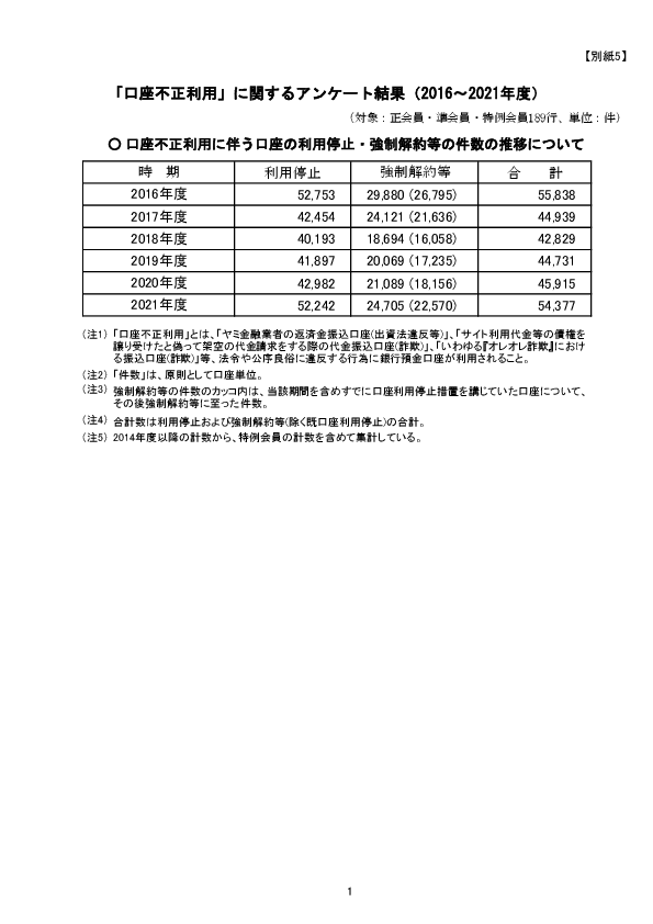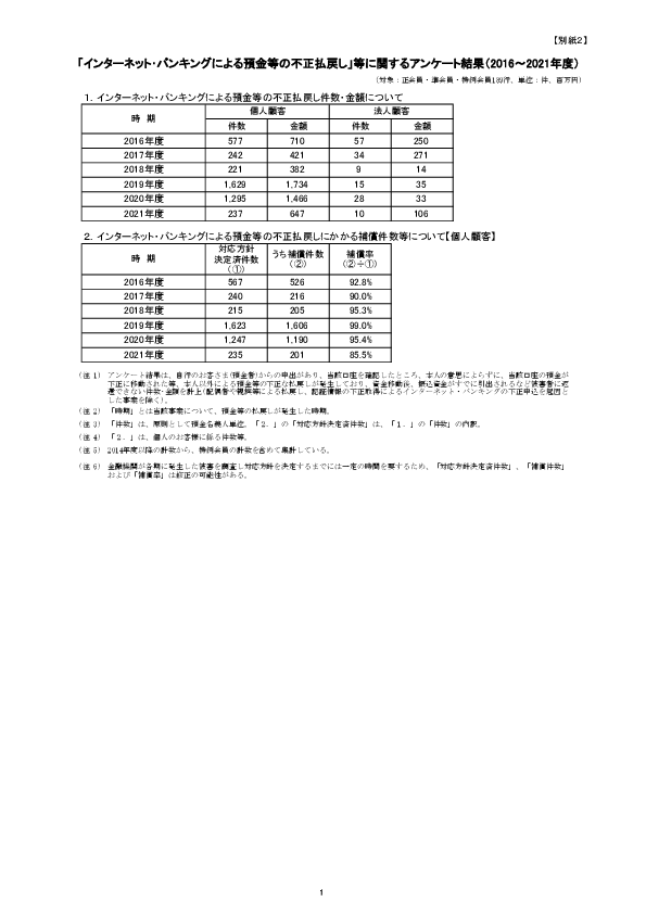 (注)各アンケートの件数・金額等の計数は、アンケート実施時点で各会員から全銀協宛に報告があった最新の計数を取りまとめている。このため、過去の各アンケート結果の計数から変更されている場合がある。