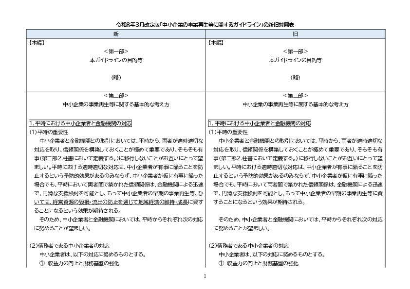 本ガイドラインの一部改定が、中小企業者の事業再生等の一助となることが期待されます。