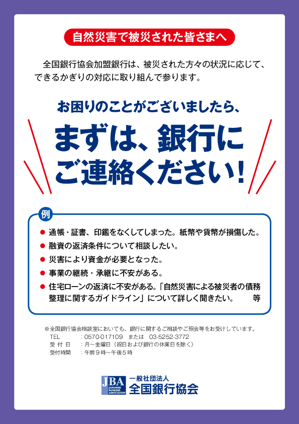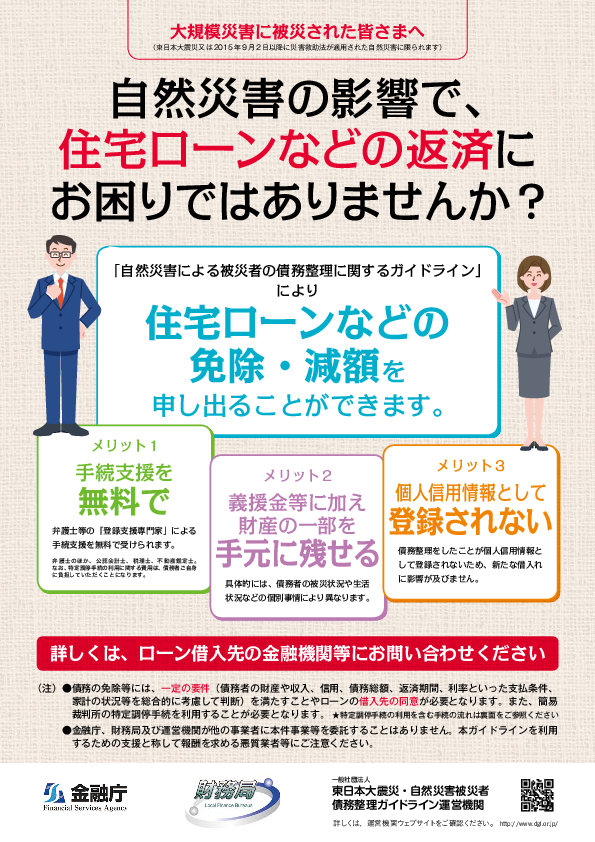 自然災害による被災者の債務整理に関するガイドラインのご案内(チラシ) [937 KB]
